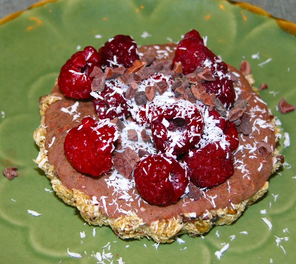 Freeze the tarts until ready to eat. Allow to soften slightly before topping with more raspberries, cacao nibs and coconut.